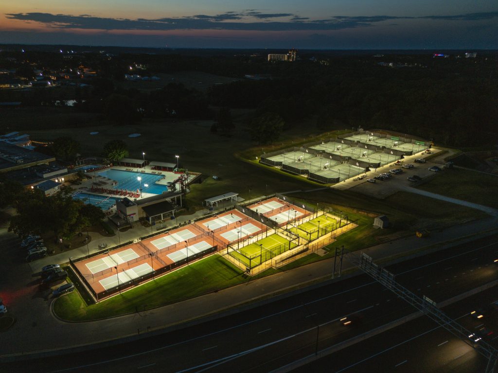 For the new pickleball courts, to provide lighting suitable for a club facility, Frasure Reps supplied (16) LSI 78,000-lumen Zone Large fixtures.